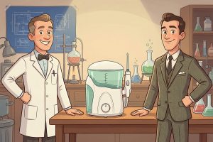Первый коммерчески успешный ирригатор появился на свет в прошлом веке. Его «родителями» в 1958 году стали американцы стоматолог Дженеральд Мойер и инженер Джон Матингли. Цель, которую они преследовали и которой в результате достигли: создать прибор, который будет генерировать мощную струю воды и с ее помощью промывать межзубные промежутки и труднодоступные места ротовой полости.